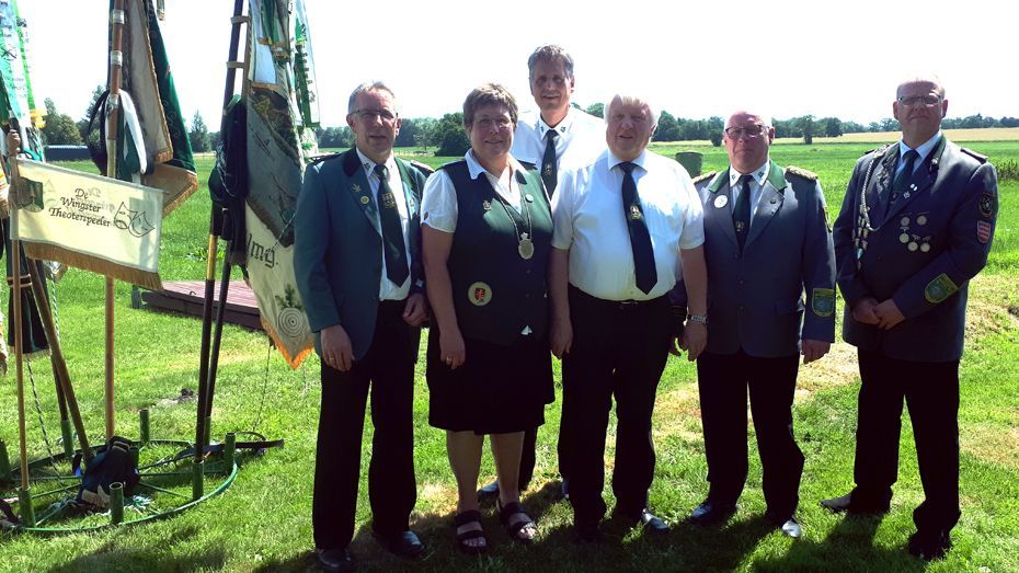 Präsident Hartmut Hinsch, Doris Gehrmann, stellv. Vors. Kai Steffens, Manfred Schütt, Kreisschützenmeister Stefan Thiele und Dirk Mahler