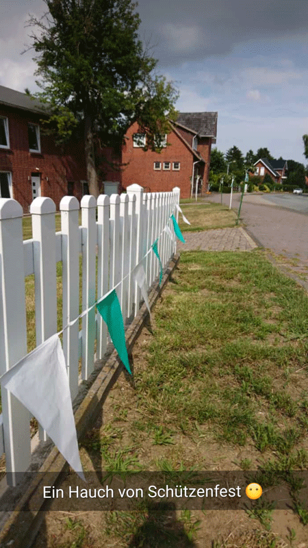 Wir würden uns aber trotzdem freuen, wenn ihr die Grundstücke an den Straßen – wie im letzen Jahr – wieder "schützenfestmäßig" schmückt.