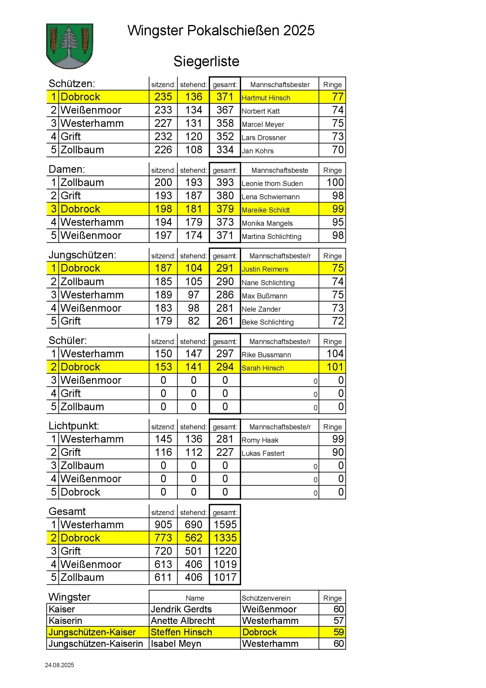 Wingster Pokalschießen 2025 –  Die Dobrocker Sieger